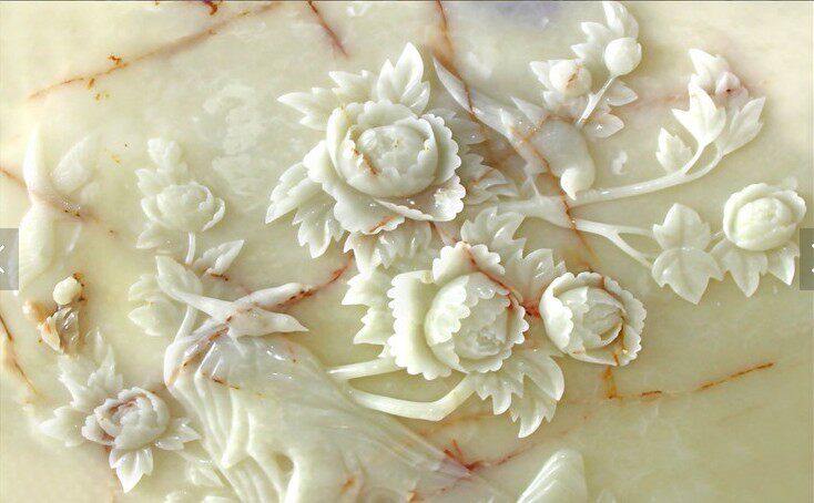 Color carving jade carving tile slate background wall living room sofa TV porch dining room bedroom peony home and wealth