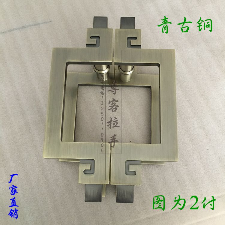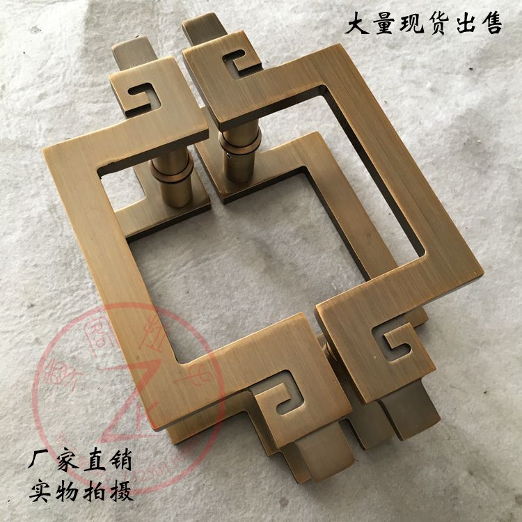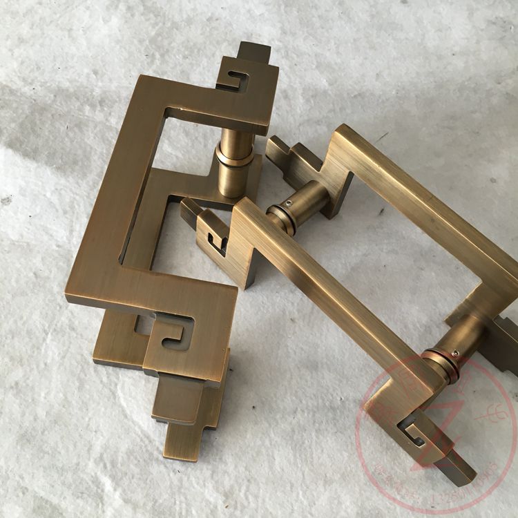 Modern new Chinese antique copper entry box door handle glass double switch push-pull big handle European retro black