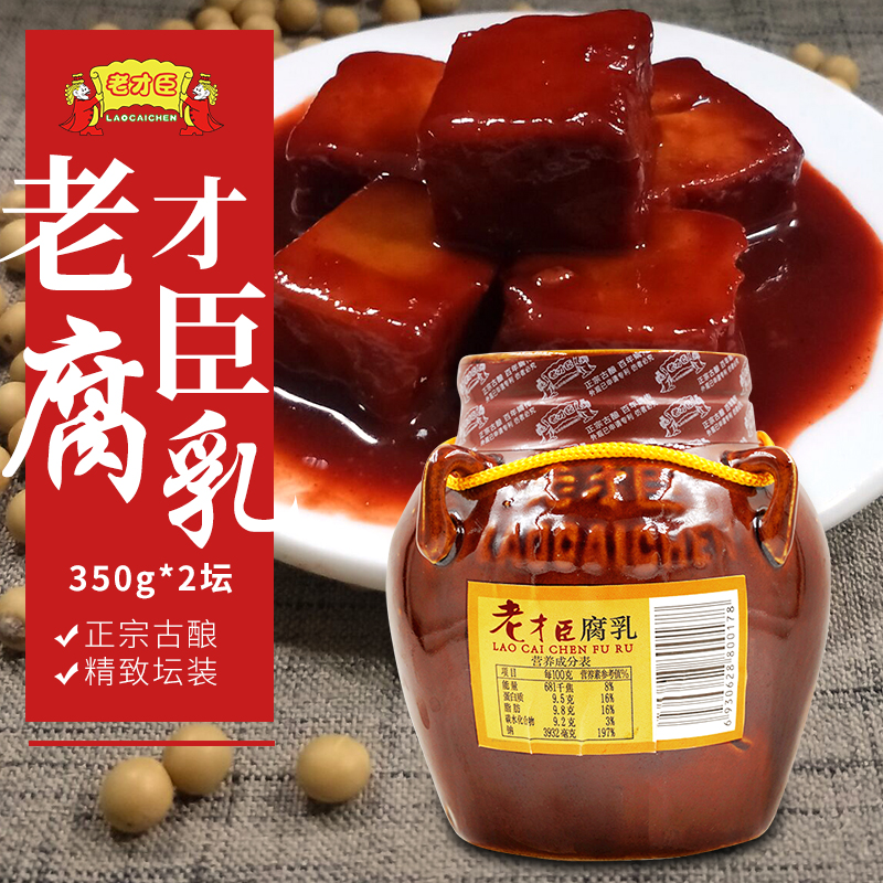 Lao Cai Chen tofu milk Red fermented bean curd 350g * 2 jars of hot pot dipping sauce Tofu mold tofu Beijing red fermented bean curd