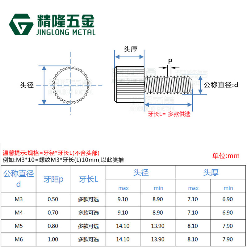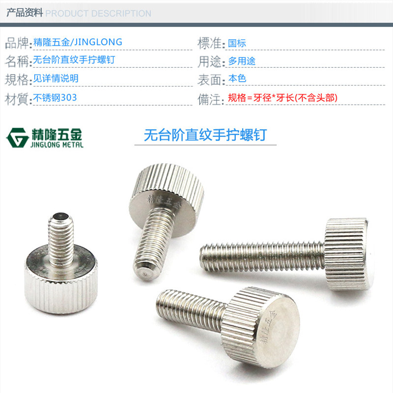 Stainless steel hand screw M3M4*681012141618202530 Straight knurled screw adjustment GB835