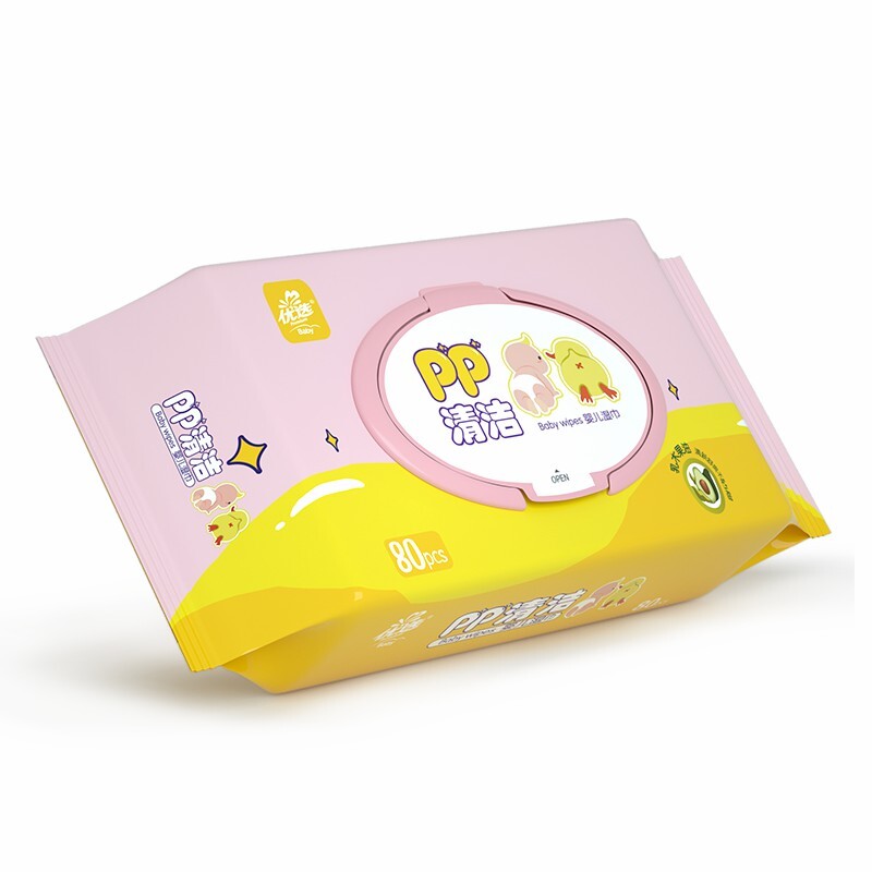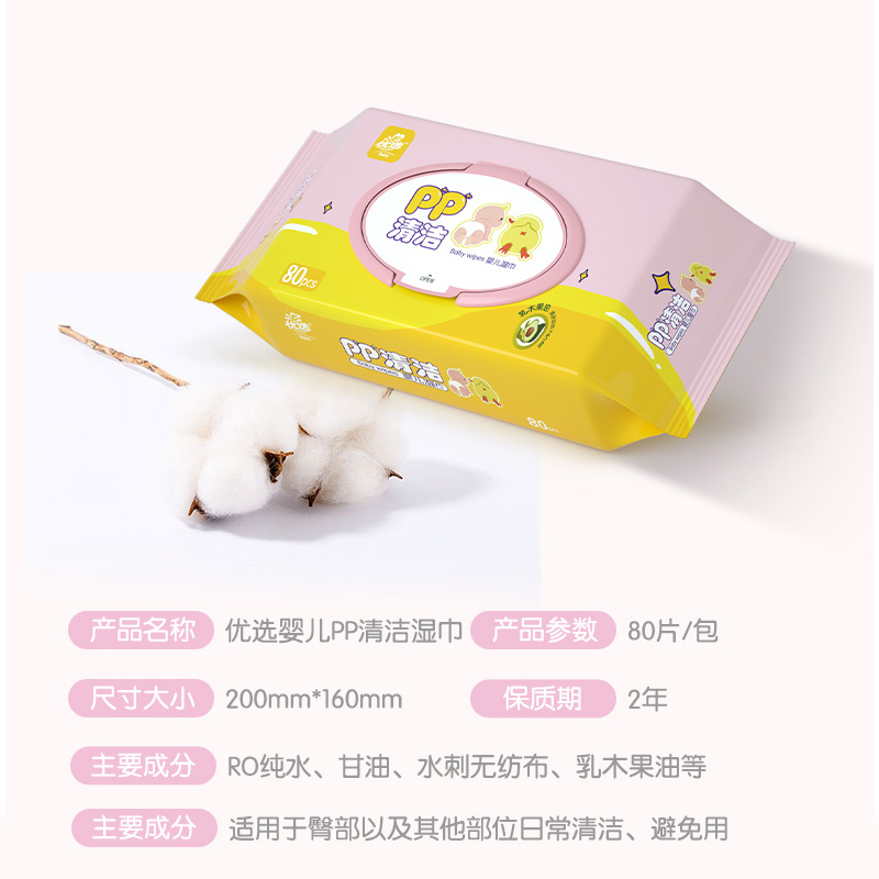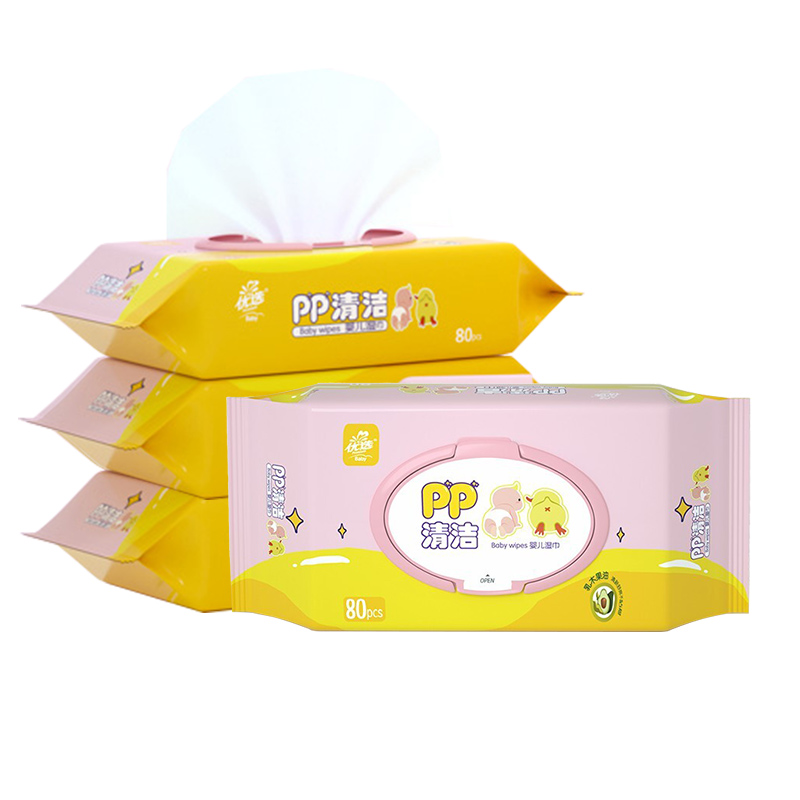 Heart phase print preferred baby PP cleaning wet towels 4 packs 80 slices of milk wood fruit oil with lid 320 smoke free of alcohol wet paper