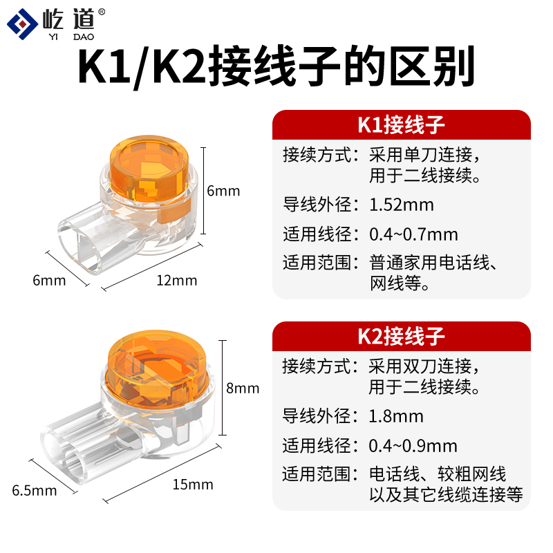 Engineering-grade wiring sub-K1K2 network cable telephone line pure copper butt terminal double-knife double-wire network crimping cap waterproof