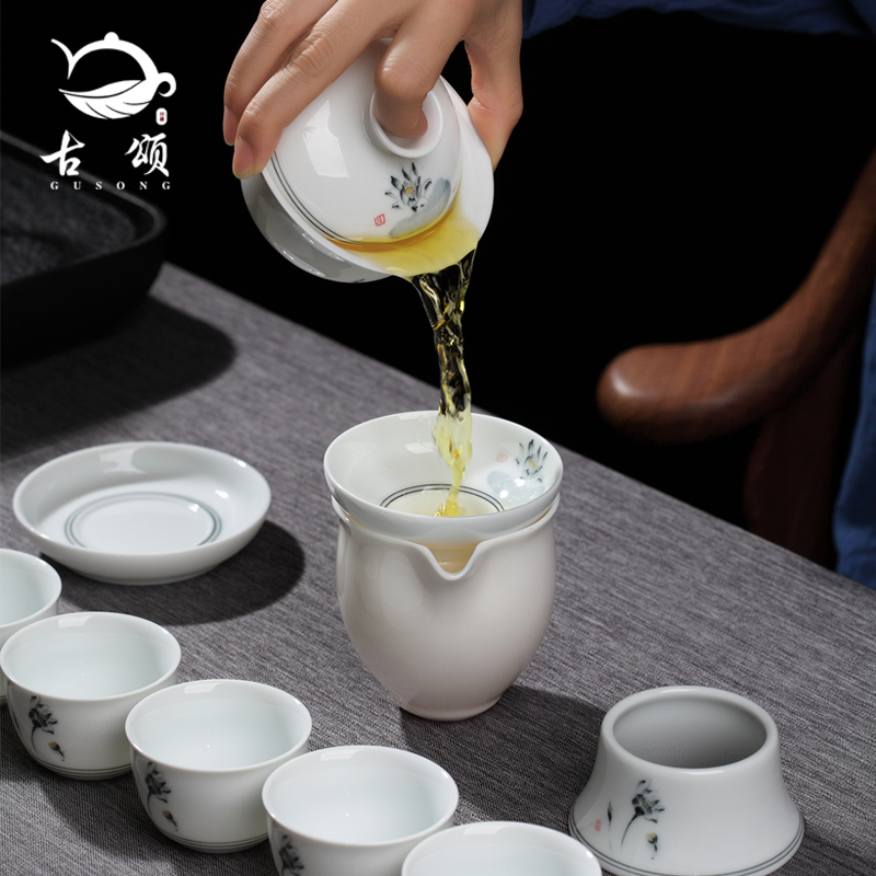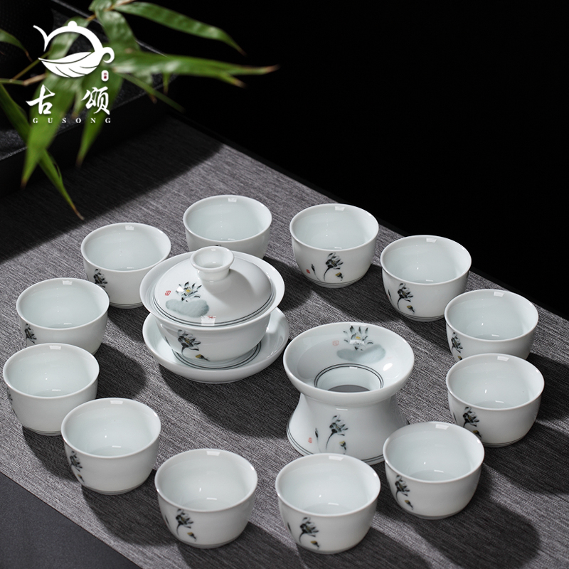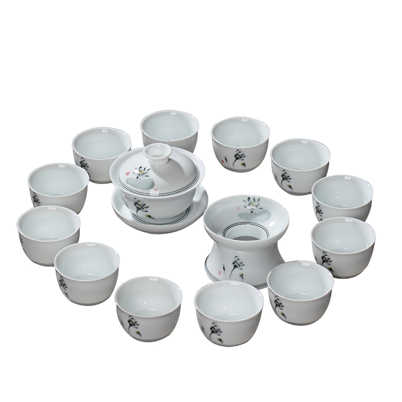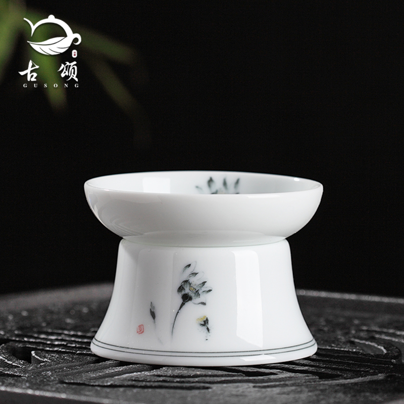 Ink Color Lotus Big Cover Bowl Ink Color Lotus Flower Enlightened Tea Leak Color Lotus Flower Like Ink Color Lotus Cover Bowl * 1 strainer * 1 tea cup 12