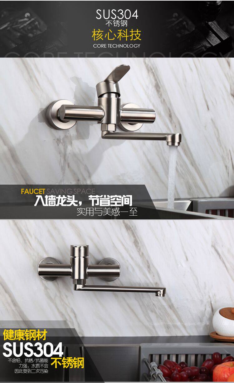 304 stainless steel entry wall type hot and cold kitchen washing vegetable basin balcony water-mixing valve laundry pool tap turnable tap