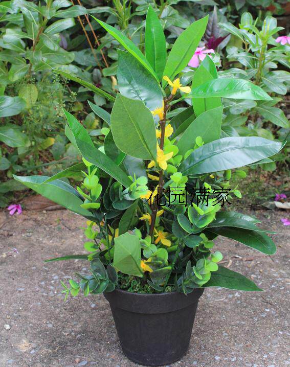 Simulation plant leaf stereo four-fork branch night to fragrant silk flower garden small potted plant floor living room shop decoration direct