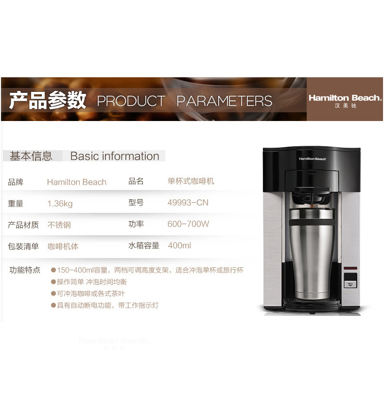 American Hanmeichi American Coffee Machine Home Fully Automatic Small Filter Paper Free Coffee Machine 49993-CN