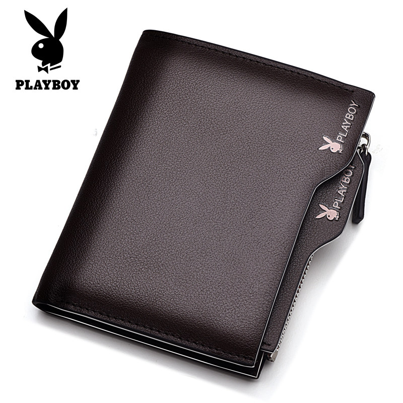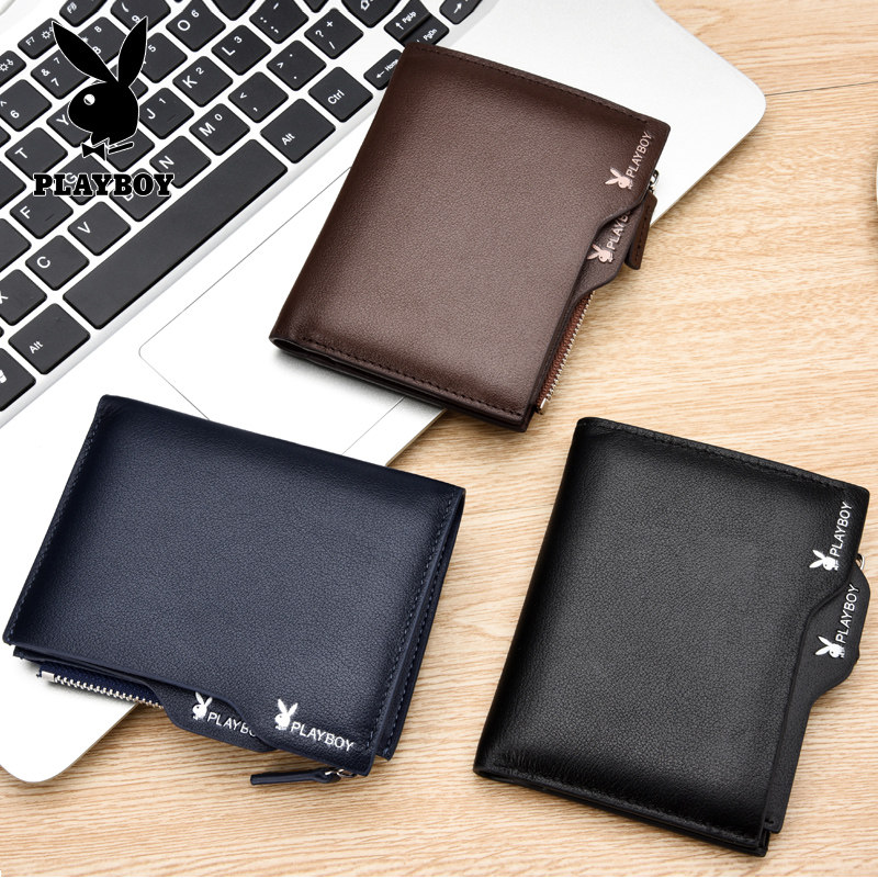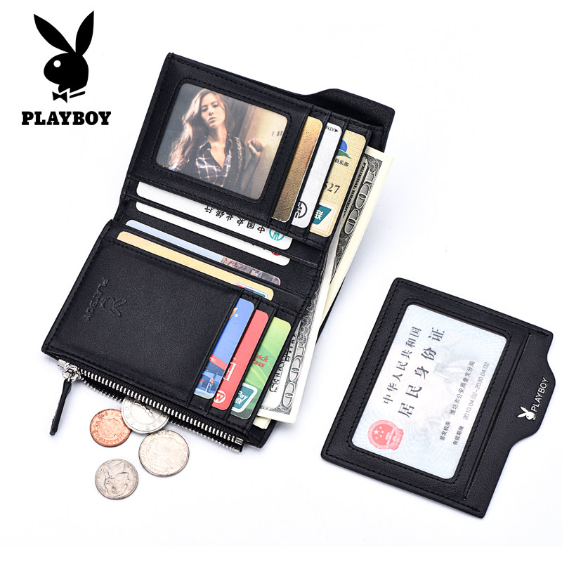 Playboy wallet multi-function wallet men's vertical top layer cowhide driver's license wallet card holder Korean leather