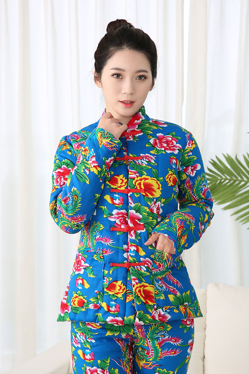 Female winter adult handmade cotton clothes stand cotton padded jacket Northeastern large flower cloth pure cotton flowers Mom's home jacket thickened pure cotton