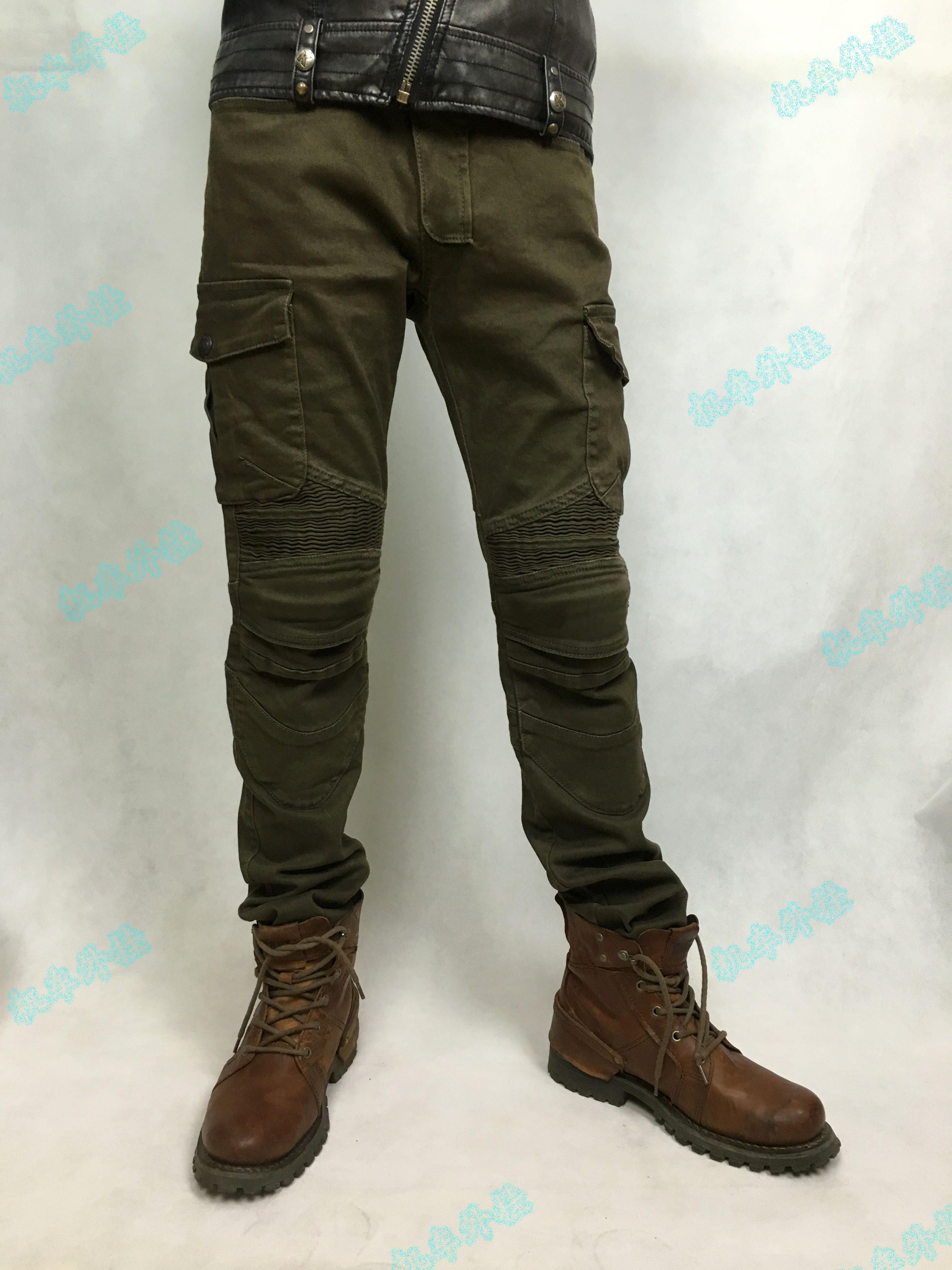 New Army Green Locomotive Racing Pants High elastic jeans Direct tube repair anti - fall