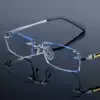 With color-changing myopia glasses Finished cut-edge glasses men's ultra-light myopia glasses frame frameless pure titanium diamond glasses