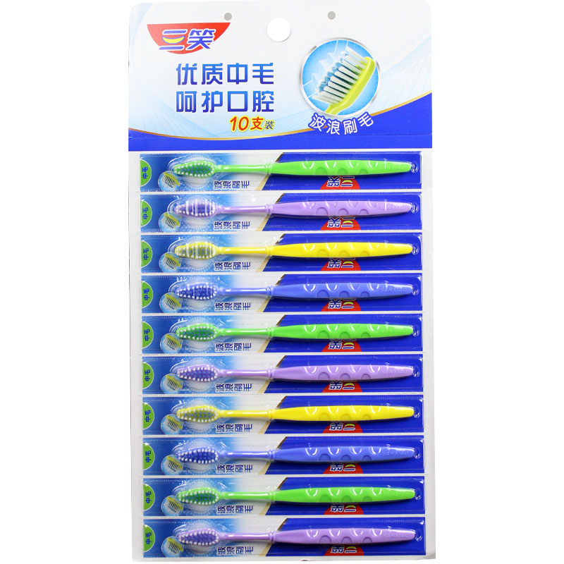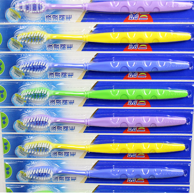 Sanxiao toothbrush Hanging toothbrush 233 Golden code carved wave type medium hair toothbrush 10 pcs