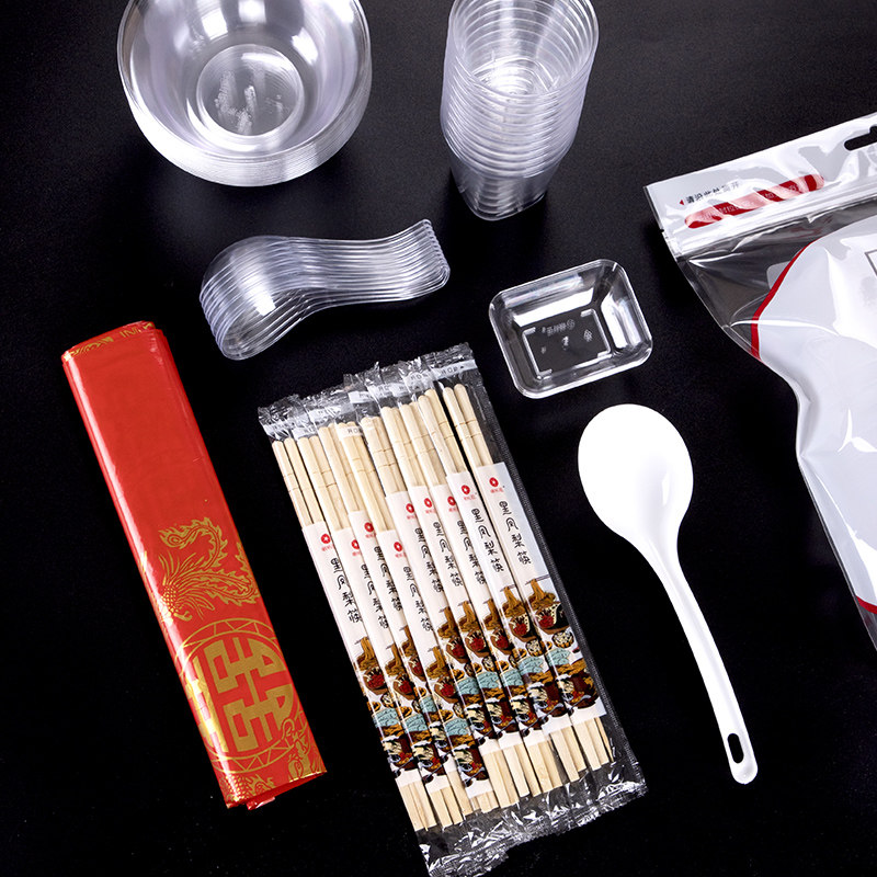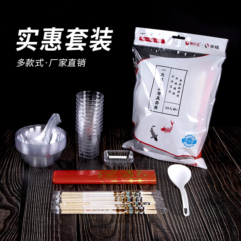 Wedding Banquet Disposable Aviation Grade Plastic Crystal Ten-Piece Set Hard Plastic Tableware Dinner BBQ Picnic Spring Outing