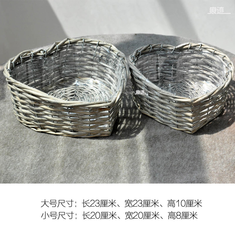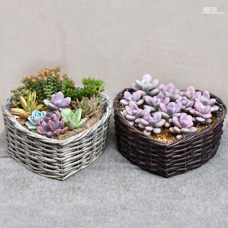 Heart-shaped rattan succulent plant flower pot wicker love heart-shaped flower arrangement meat platter vase romantic retro creative