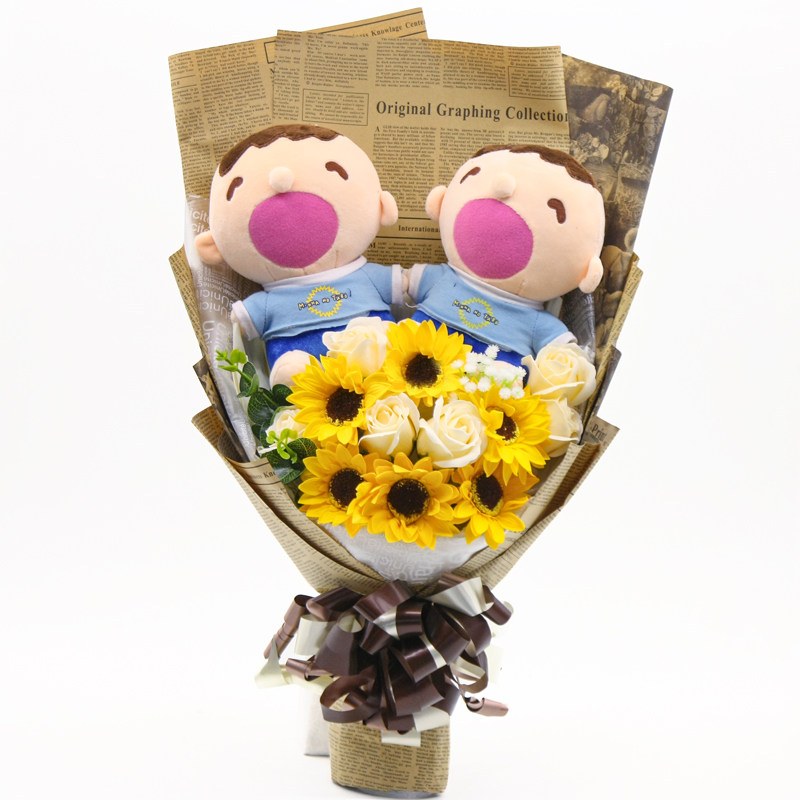 Big mouth baby doll cartoon plush doll to send girlfriend wife colleague birthday gift simulated rose
