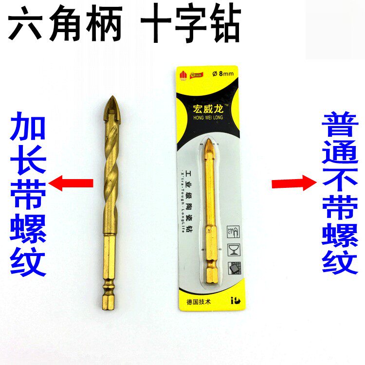 Extended hexagonal handle ceramic brick wall punching tool glass cross triangle alloy drill bit opener 8 sets 6mm