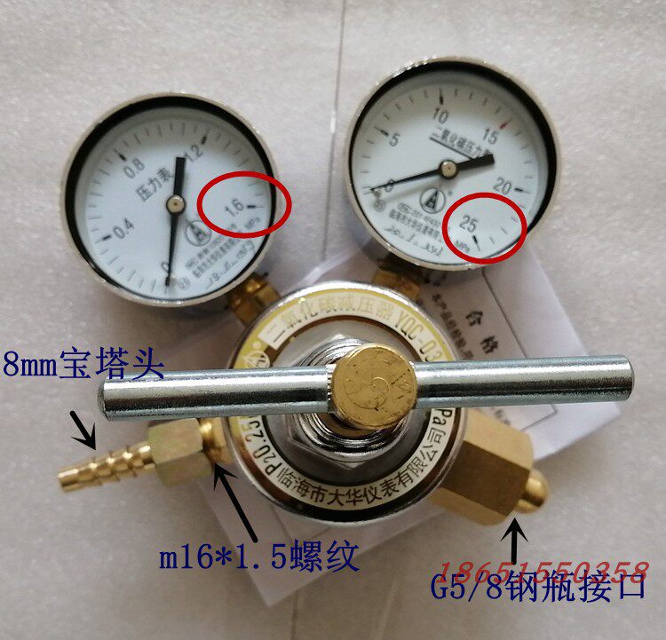 YQC-03 carbon dioxide pressure reducer CO2 bimeter pressure reducing valve carbon dioxide full copper decompression table Yong-CO2 table