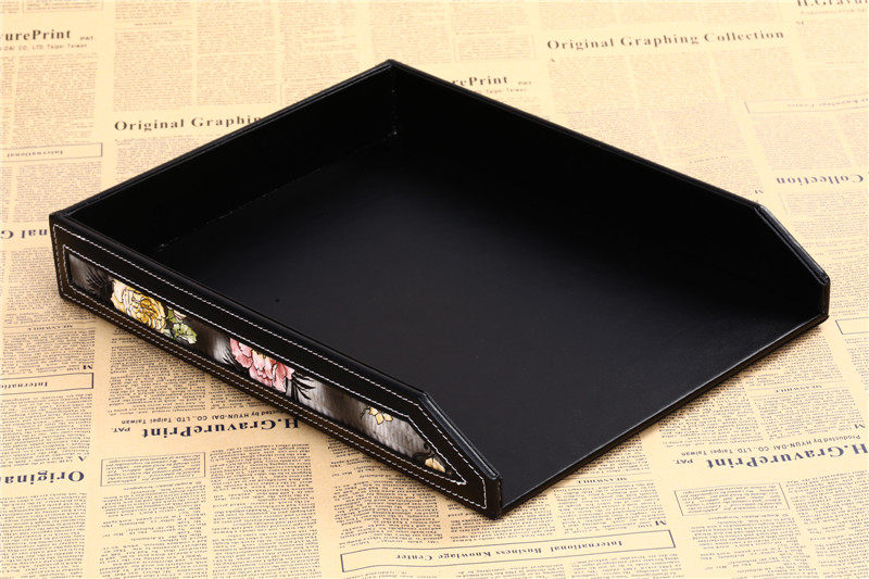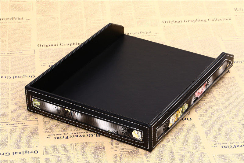 High-grade business leather A4 paper data tray wooden file frame single-layer leather fashion office file storage box rack