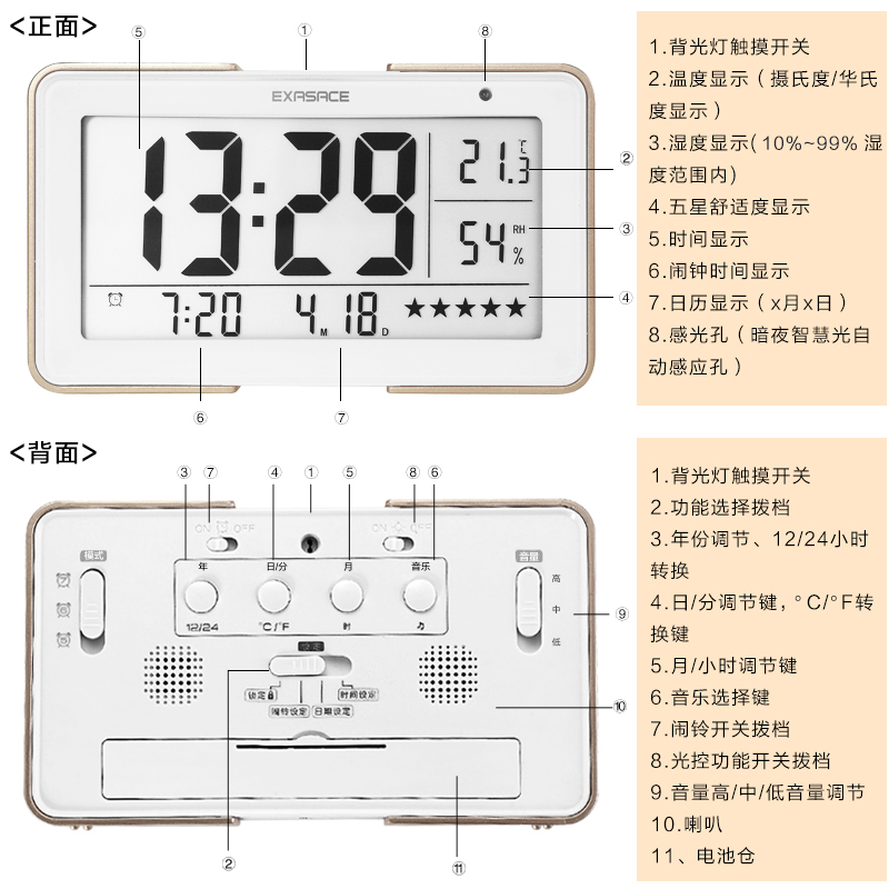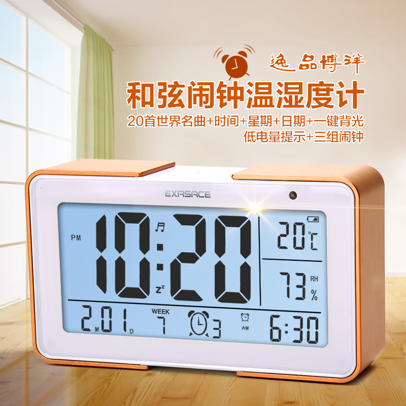 Yipin Boyang Music Alarm Clock Thermohygrometer High Precision Automatic Photosensitive Creative Student Alarm Clock EC-C2