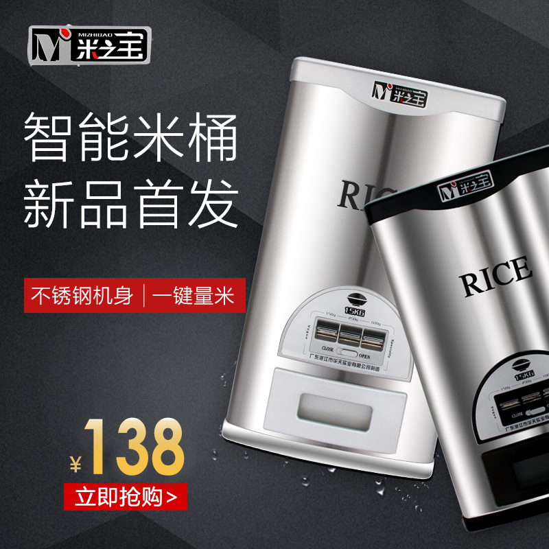 Sealed stainless steel rice barrel 15 20 30kg insect-proof moisture-proof rice storage box is equipped with automatic metering rice jar kitchen rice cabinet