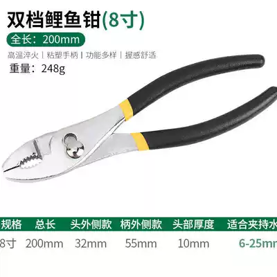 Carp pliers, water pipe pliers, fish tail, fish mouth pliers, powerful pliers, 8 inch two-color plastic handle, steel wire vise, walnut pliers