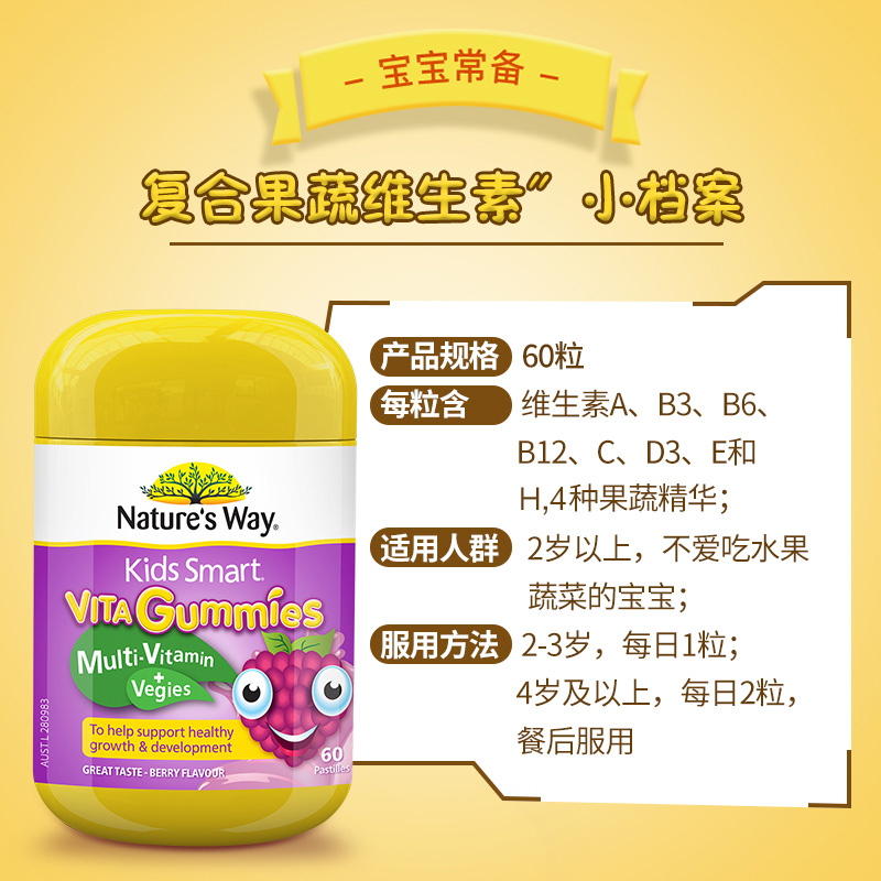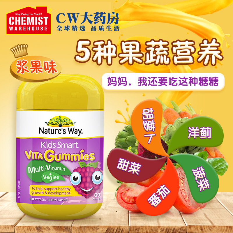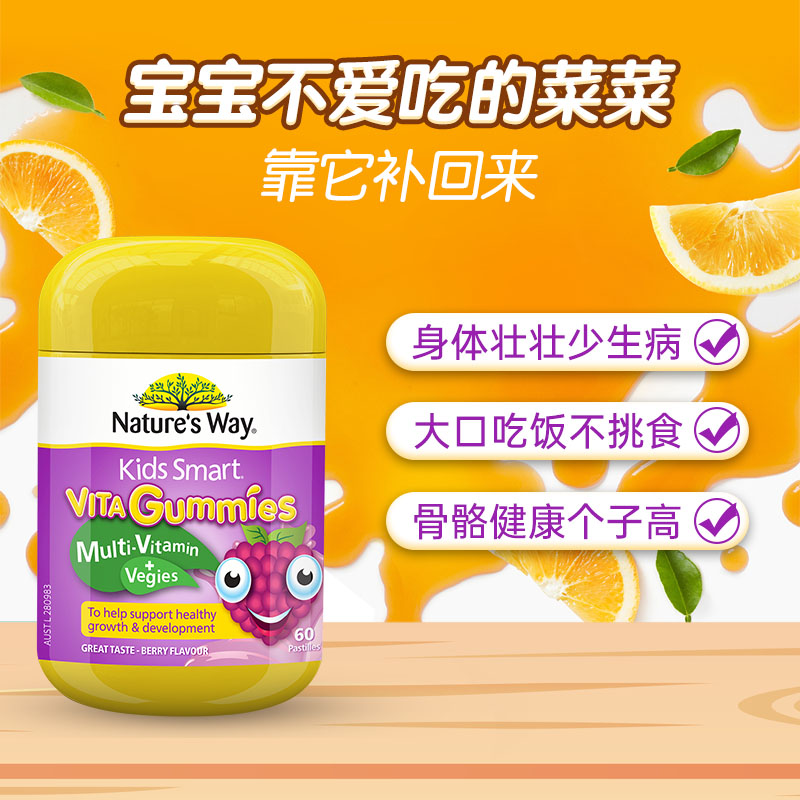 Natures way Jiathmin children's many vitamins vegetables chewing soft sugar 60 grains of Australian imports