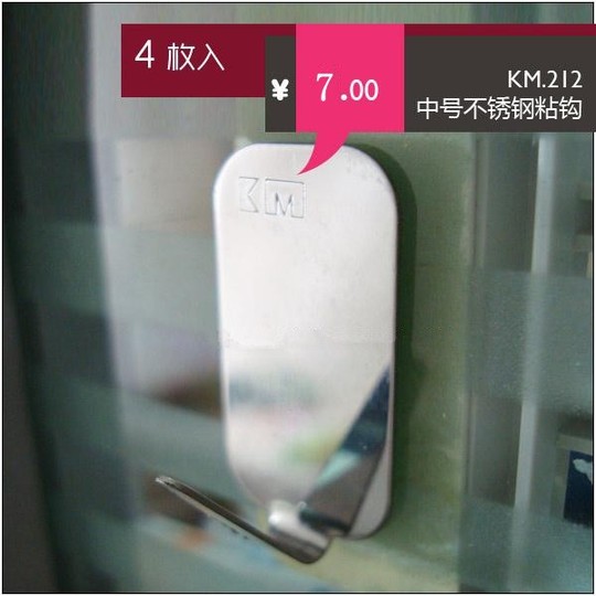 Japan KM212 medium rectangular strong stainless steel sticky hook 3M non-marking door hook 4 pieces load-bearing 1 KG