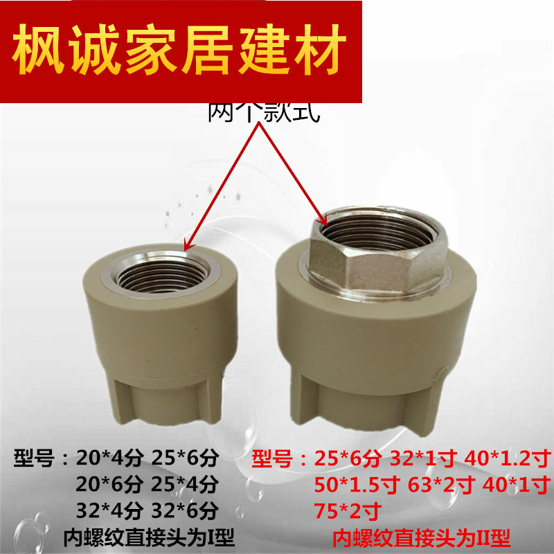 United plastic PPR hot and cold water pipe fittings copper inner tooth straightware 63 * 50 * 40 * 32 * 25 copper heterodiameter inner wire straight