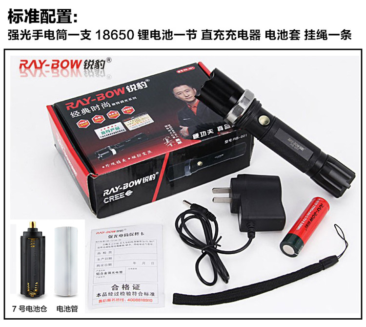 Ruibao 001 Rechargeable Flashlight Zoom Imported LED Long-range Focus Outdoor Lighting Ride