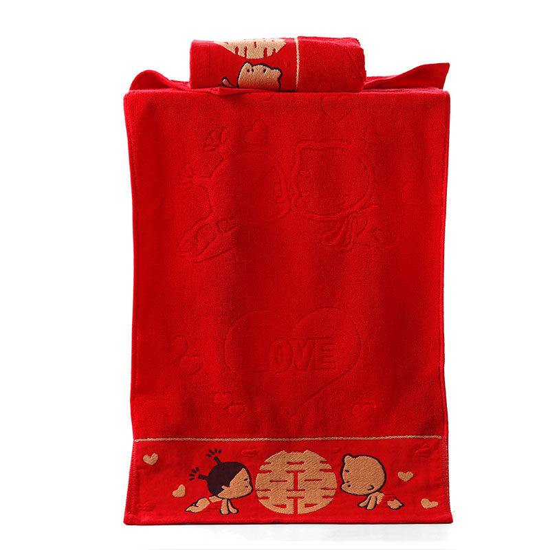 Wedding Towel Wedding PURE COTTON WASH FACE HOME A PAIR OF NEWLYWEDS BIG RED HAPPY WORDS WEDDING BACK GIFT BOX DRESS