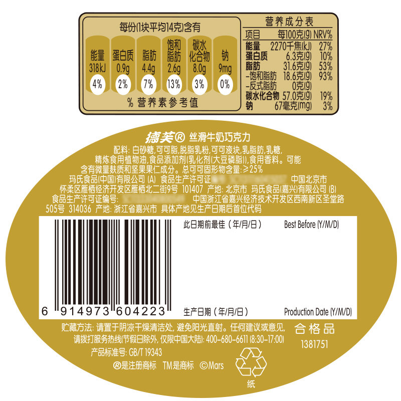 (Bai Qiao 252g +mms270g milk +mms270g mixed + crispy fragrant rice 216g).