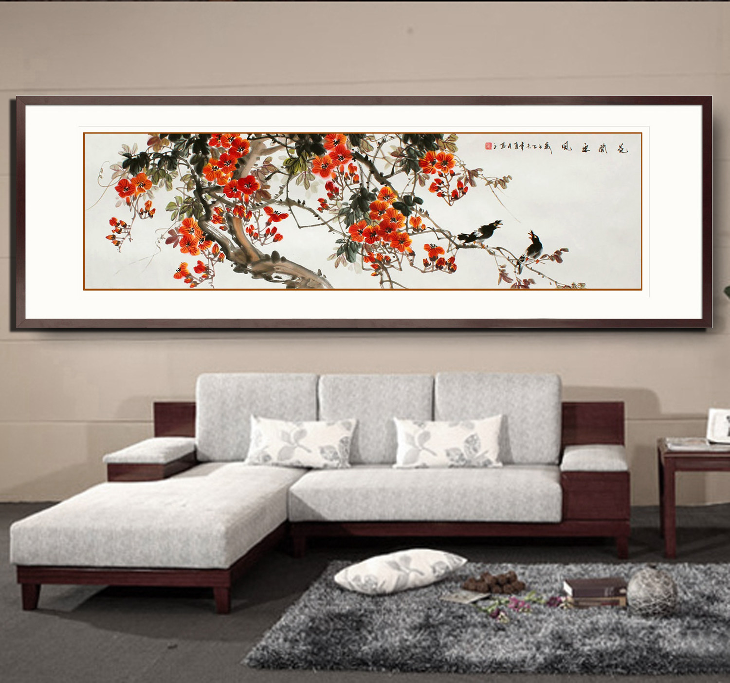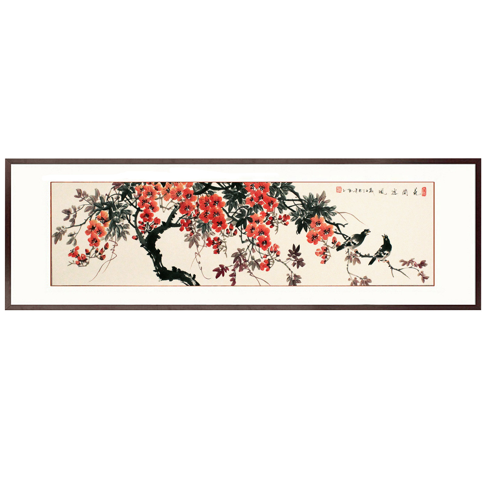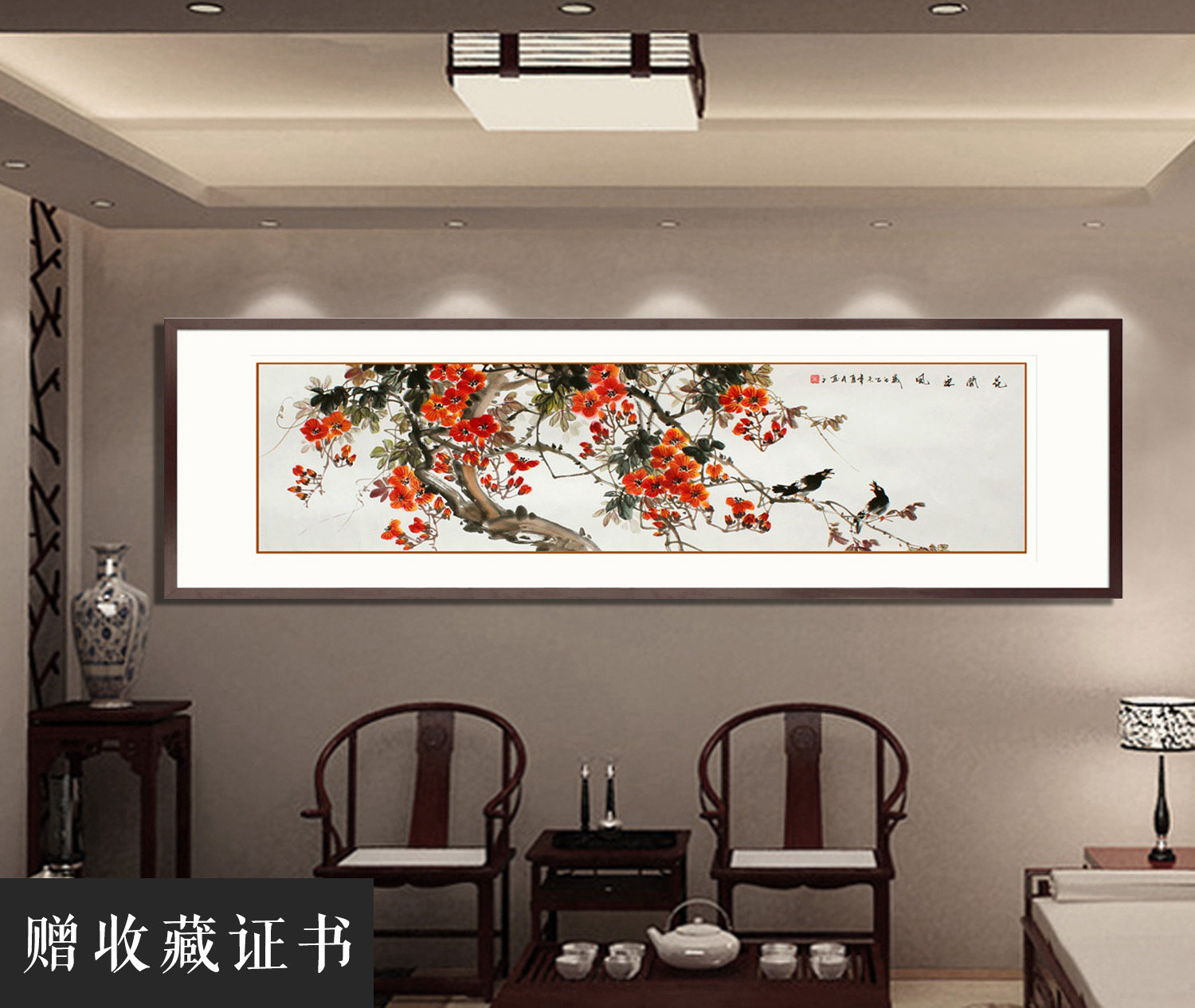 Customized pure hand-painted Chinese painting flower and bird painting original flower banner has been mounted hanging painting dining room living room new Chinese style