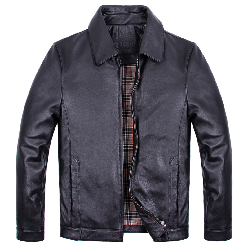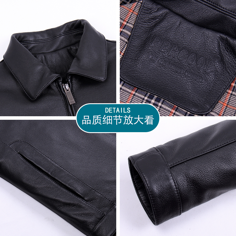 Head Layer Cow Leather Leather Clothing Middle-aged Men's Clothing Business Casual Turnover Genuine Leather Jacket Autumn Winter New Black Leather Jacket Thickness