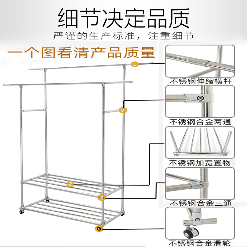 Thickened stainless steel double-rod telescopic clothes hanger lifting indoor and outdoor storage floor pulley moving clothes quilt rack