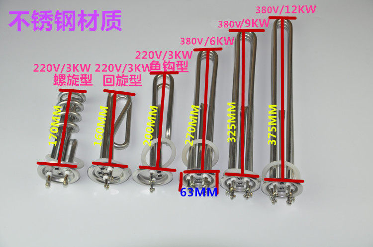 63 plate water heater water heater heating tube stainless steel copper tube 380V 6kw380v 9kw380v 12kw