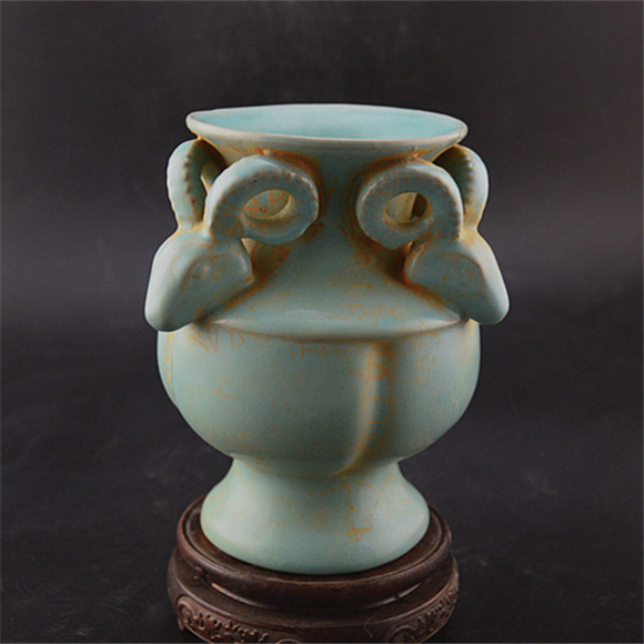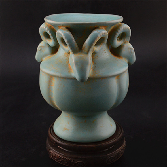 Song Ru Kiln Sky Green Glaze Three Sheep Esteem Unearthed Antique Ancient Play Chinese Imitation Antique Porcelain Home Decoration Pendulum Retro Collection