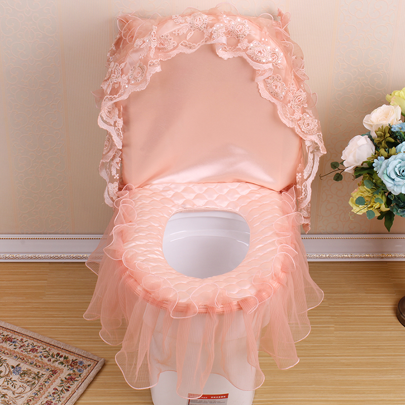 Princess Fan quilted lace toilet cushion Three sets of laced toilet cover U type square toilet cover hood