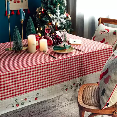 Christmas tree tablecloth Christmas rain grid tassel-red Christmas-lace rain grid-red Christmas-strawberry tablecloth