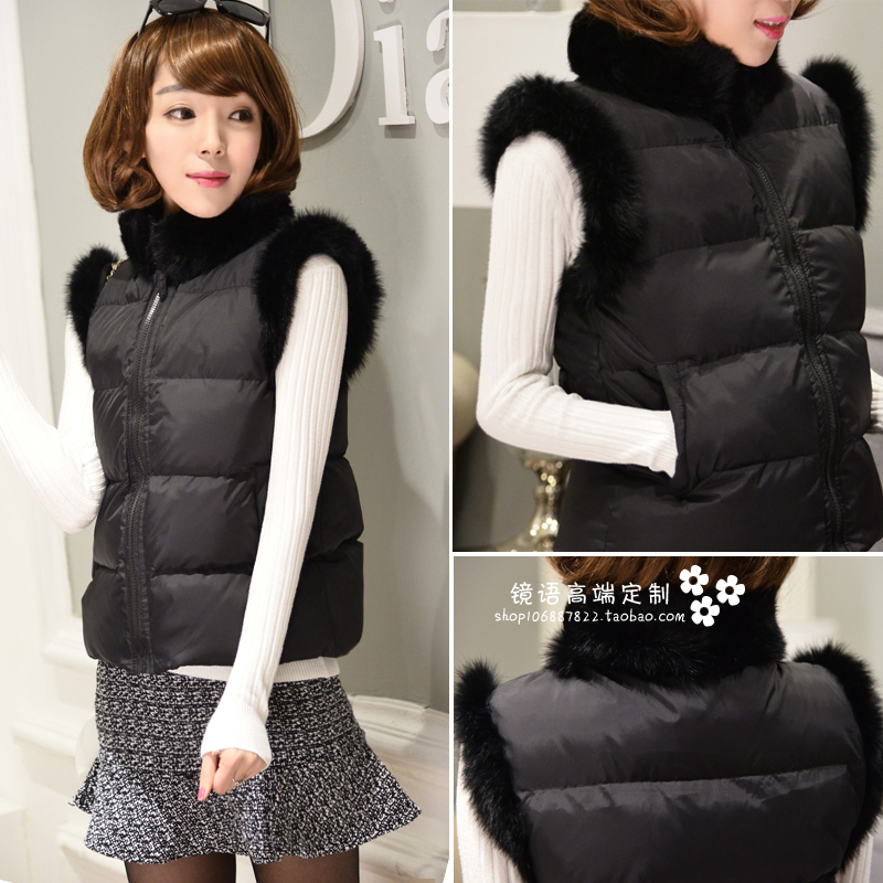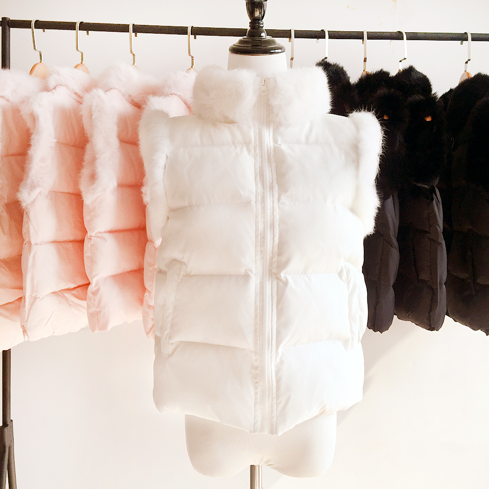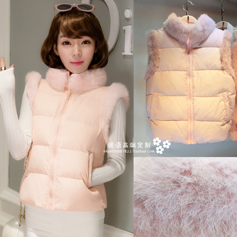 2021 Winter Korea Donggate Real Rabbit Hair Shoulder Campaign Students to Train Beetty Vest Feather Cotton Clamp