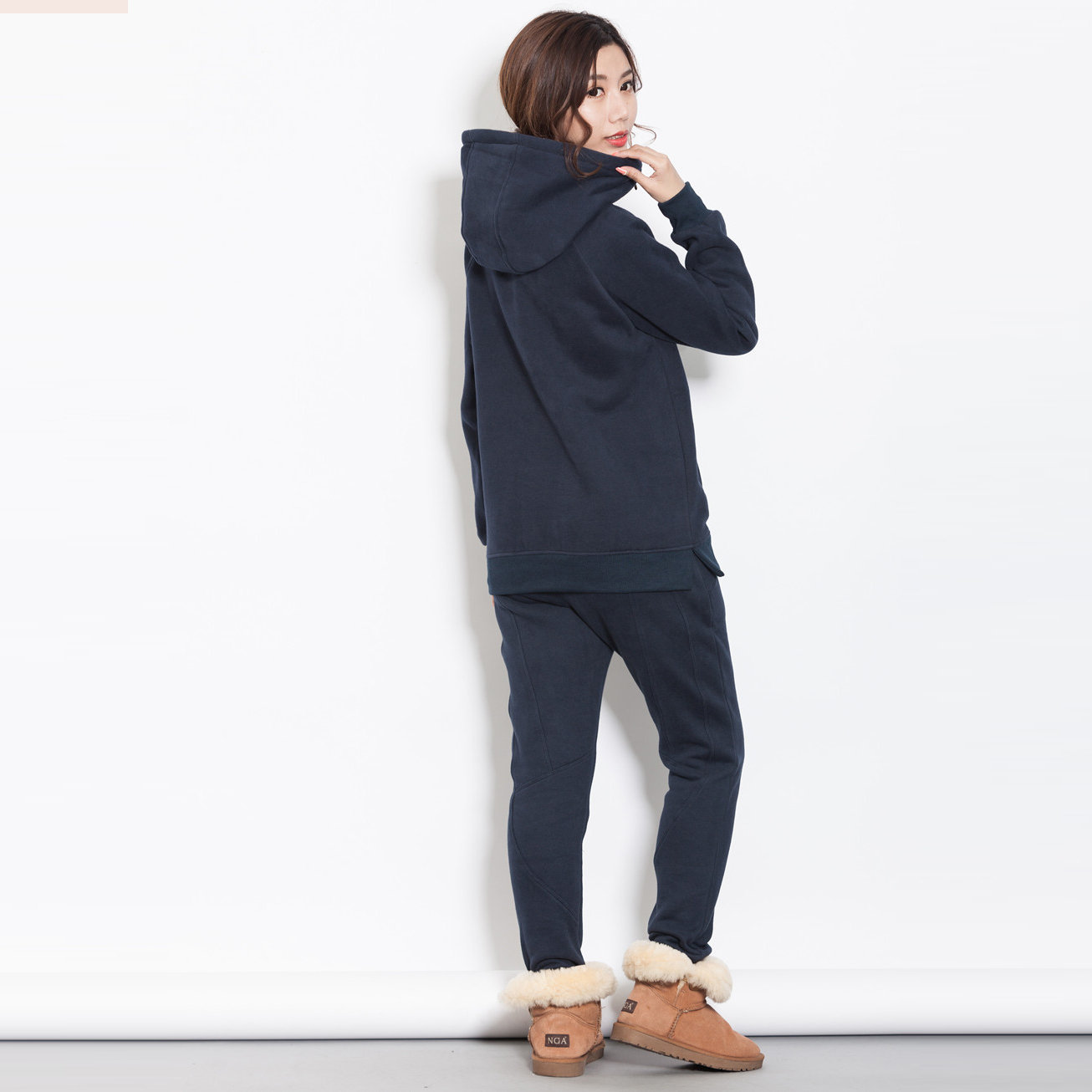 Real Madrid's new minimalist side pull chain pure color thickened with velvety loose large size with cap casual thick cotton suede suit woman