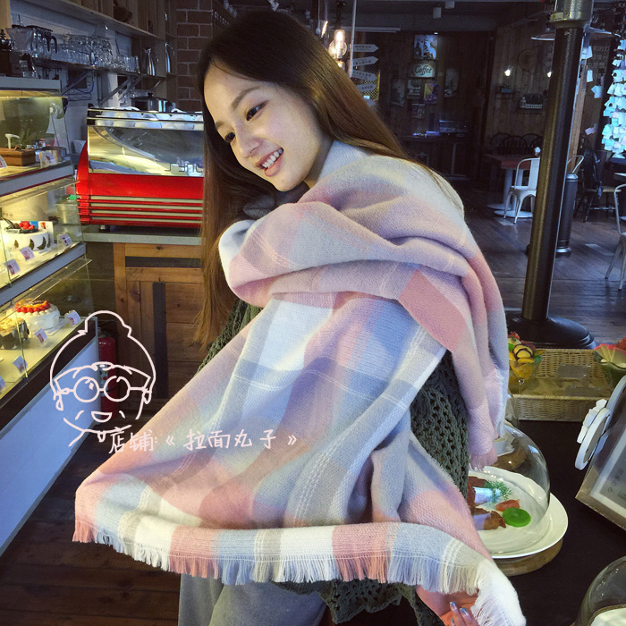 South Korea Winter Cute Imitation Cashmere Plaid Style Sub-Flow Su Scarf Thicken Soft Girl Day Ensemble Dream Shawl Lady