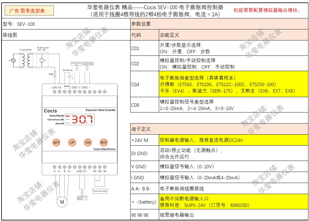 cocis electronic expansion valve driver analog input controller SEV-100 200 series