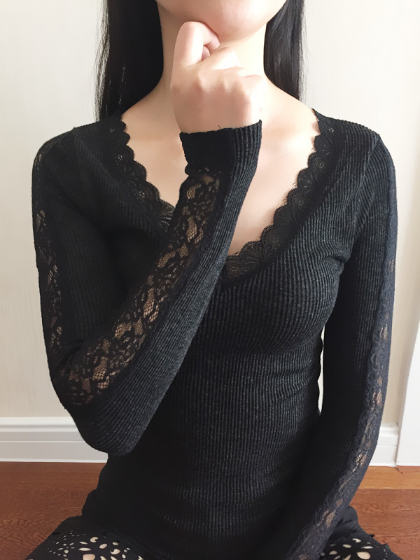 Tree Huajin lace lace sleeves lace deep V collar beauty body beating undershirt fashion brief about 100 hitch women's underwear-Taobao