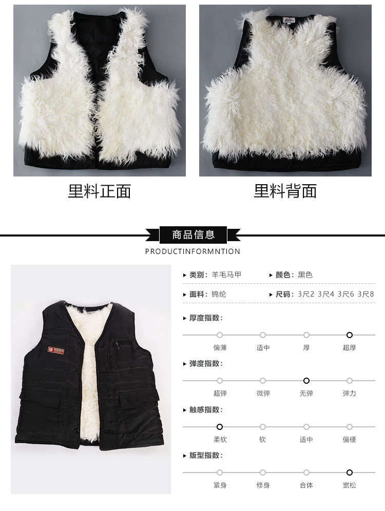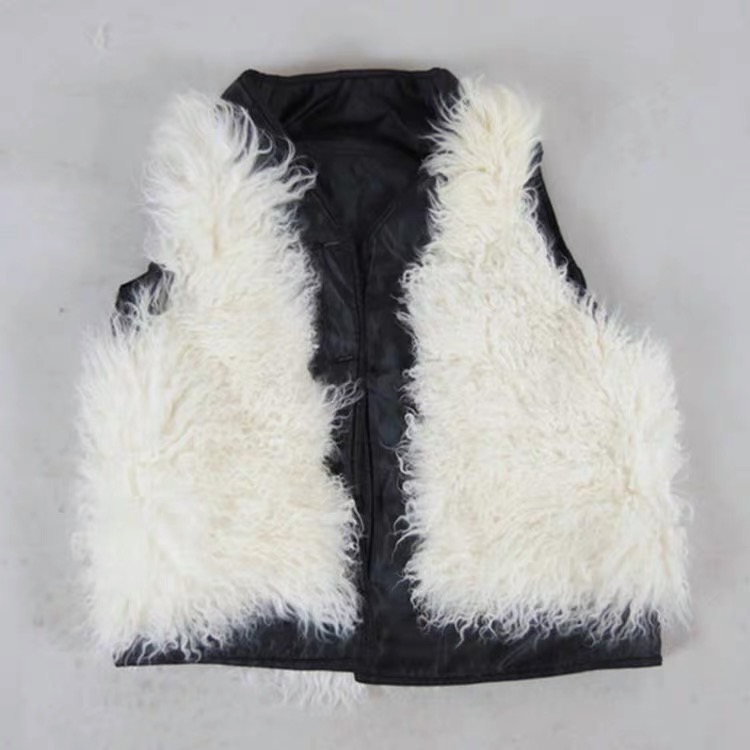Long-haired vest in the live-noodle belt Live-faced sheep shearing belt lining vest Khaki sheep shearing belt lining vest Shearing