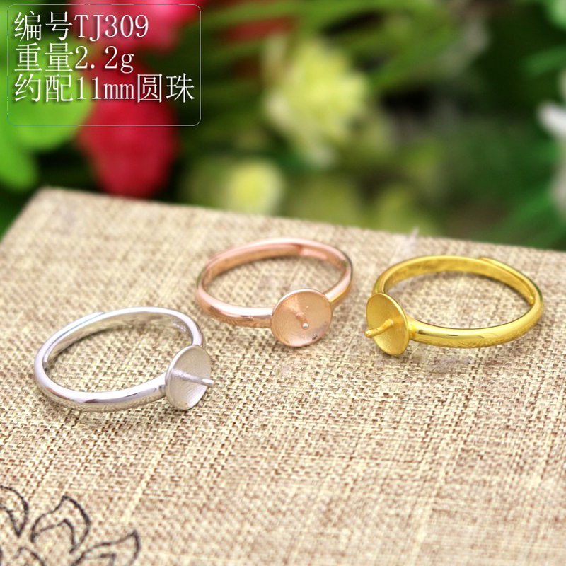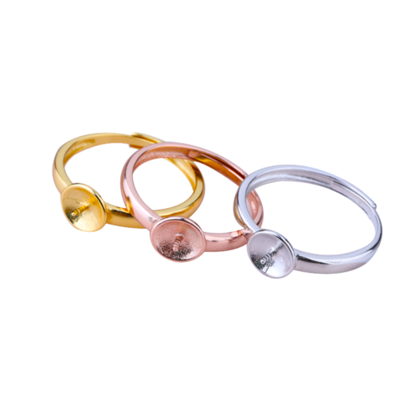 925 silver gold-plated ring empty setting hand-inlaid beeswax turquoise amber ring setting 8 to 13mm bead ring setting