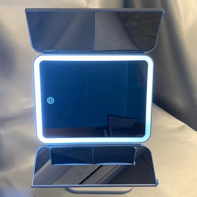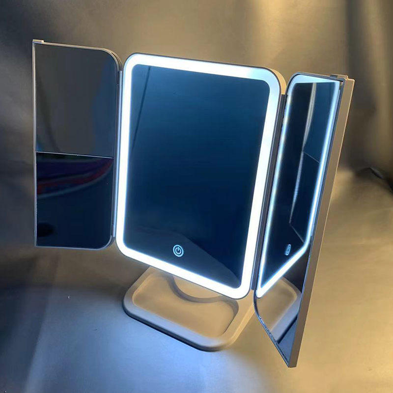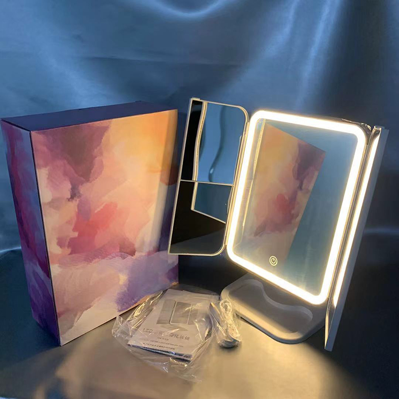 LED Light Makeup Mirror Desktop Desktop Three-sided Folding Shell Light Mirror Meaning Island Fill Light Beauty Makeup Mirror Dressing Mirror