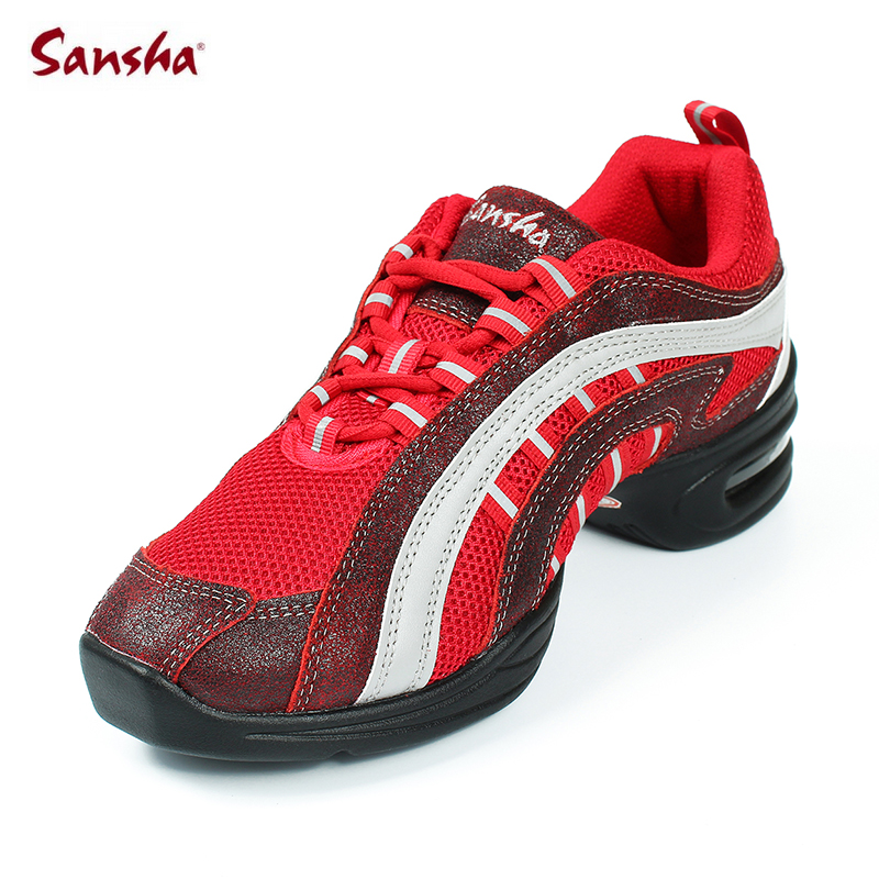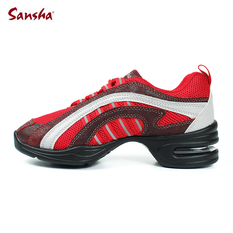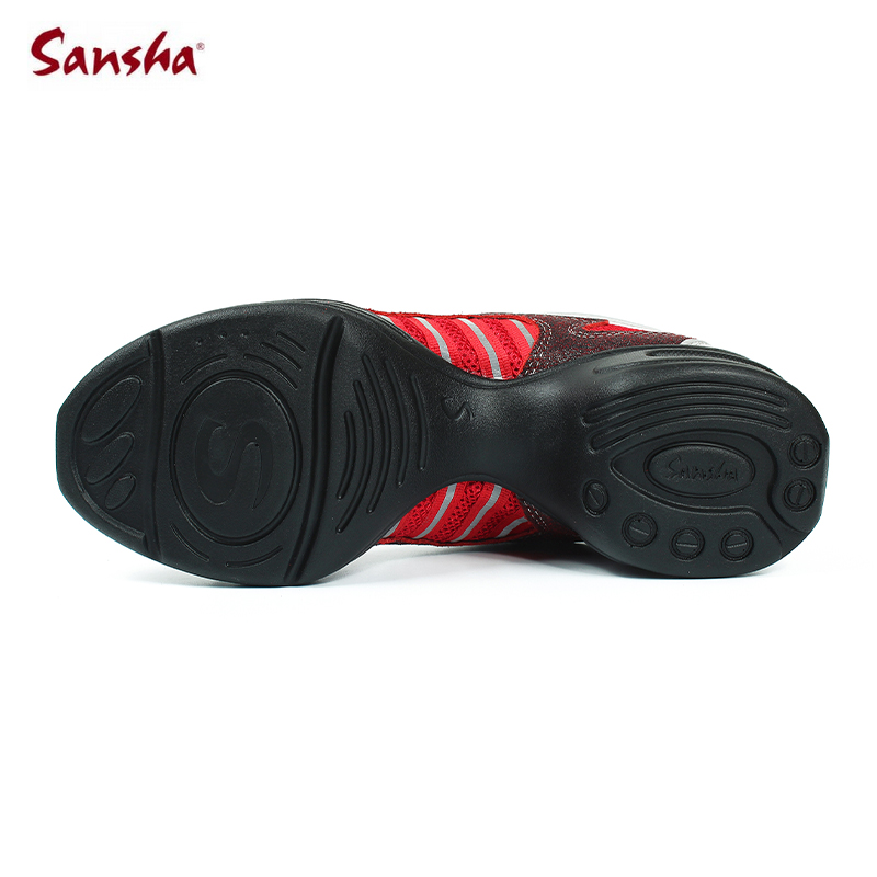 Sansha French Sansha red cracked cowhide breathable mesh fitness square dance shoes casual men and women