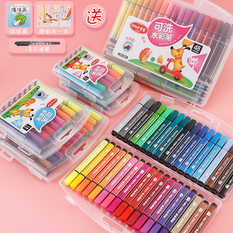 Mastery of large capacity Children's watercolor pens washable 24 color Kindergarten with elementary school students Coarse Rod Graffiti Brush Sets group