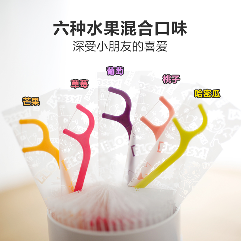 Japan Flossy children's special dental floss stick 6 kinds of fruit flavors single 60 floss