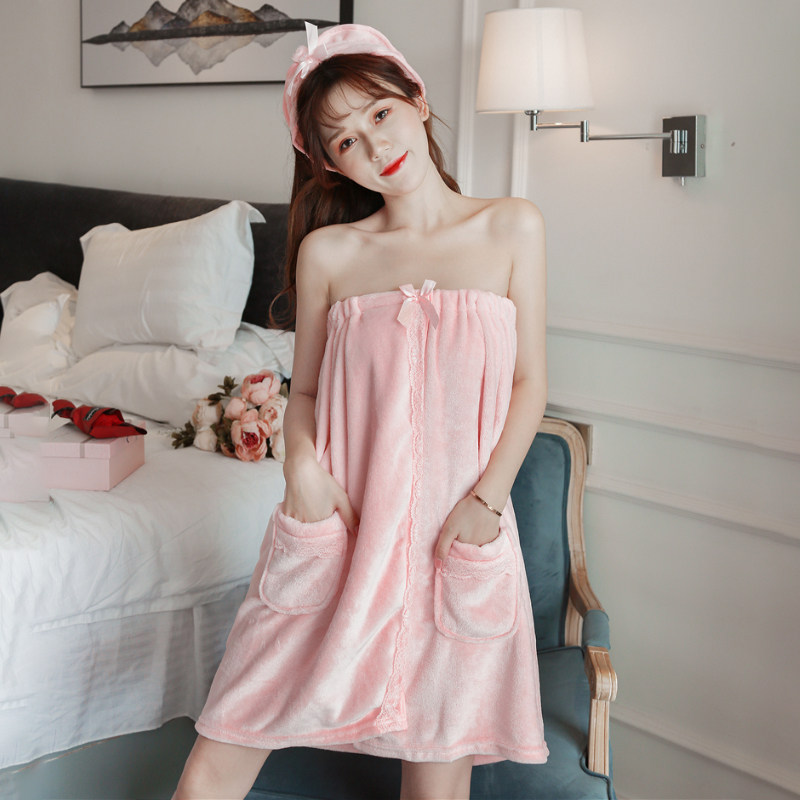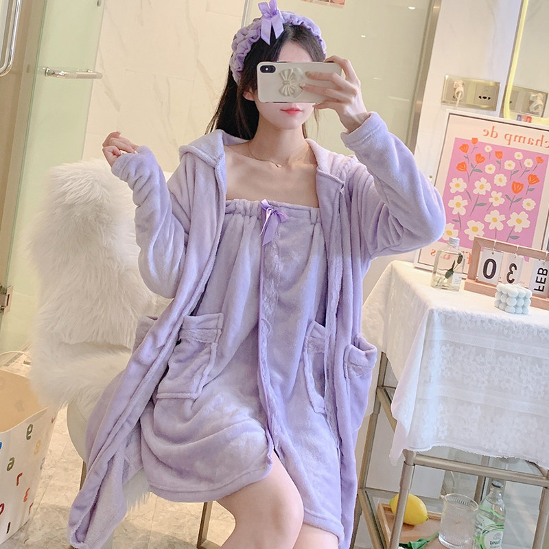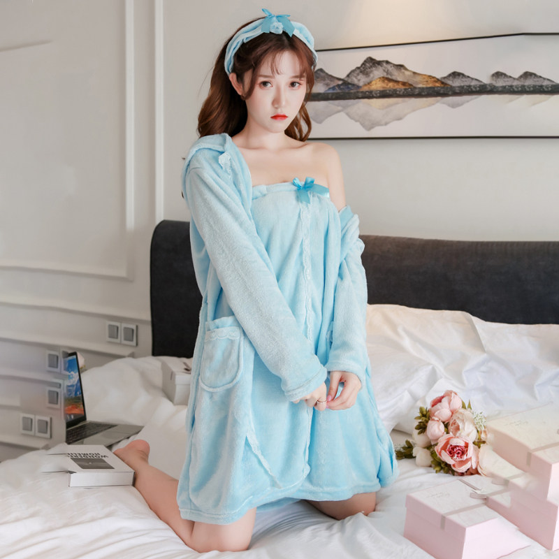 Autumn winter ladies' flannel pyjamas sexy wrapped in chest and robes, two sets of cute little sub-smeared sleepwear skirts