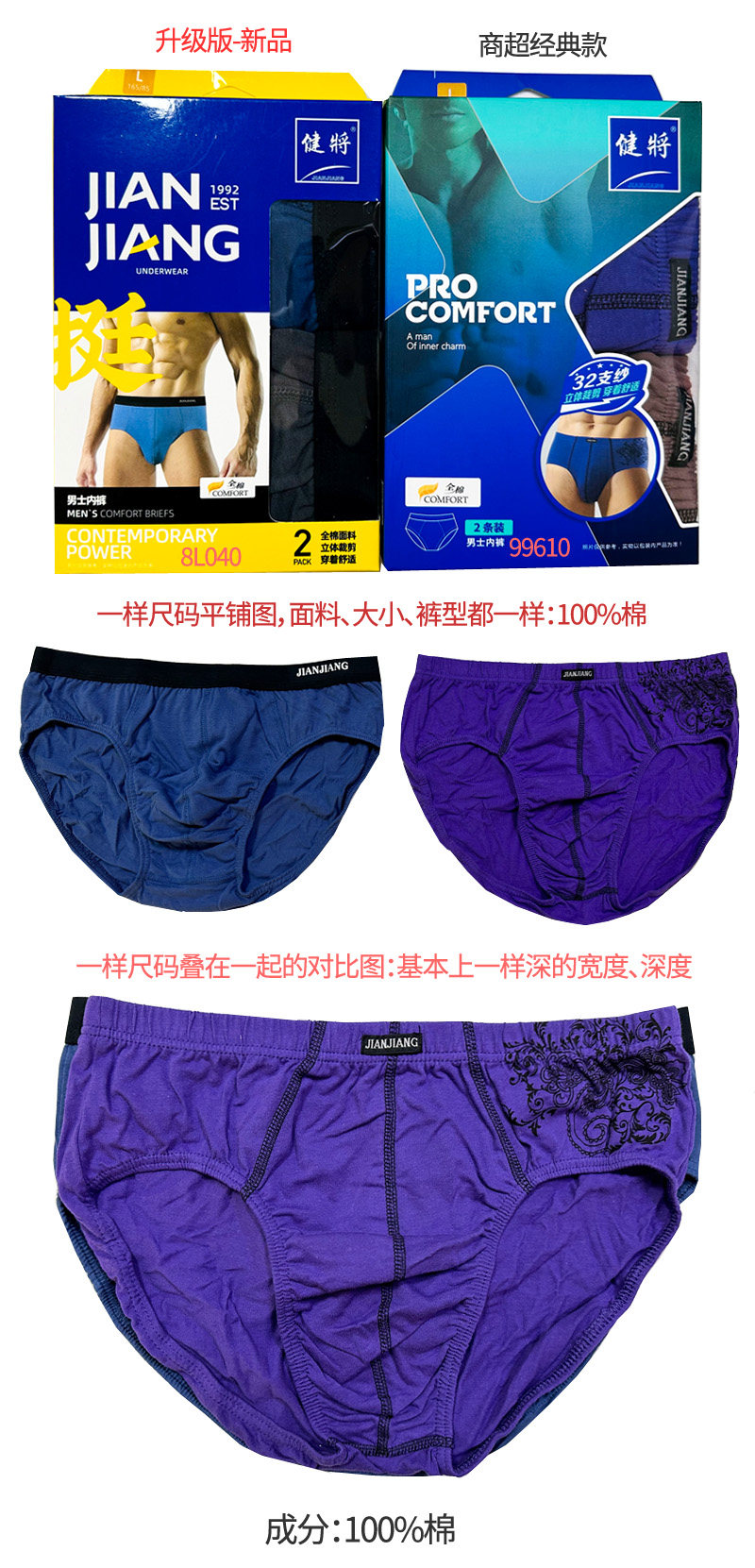 Jiang Pure Cotton Box 4 pairs of men's underwear pure cotton triangle trousers in the middle - waist pants 100 % cotton shorts